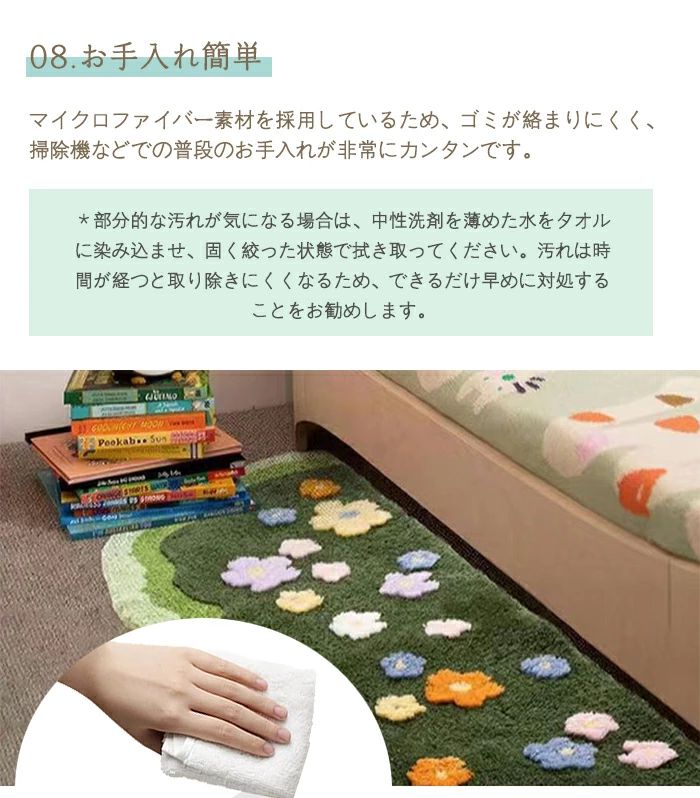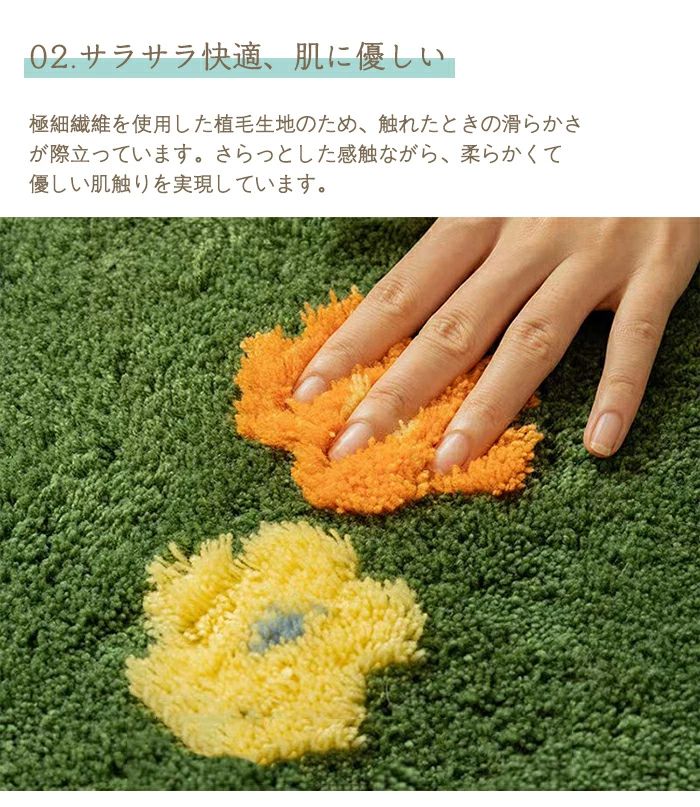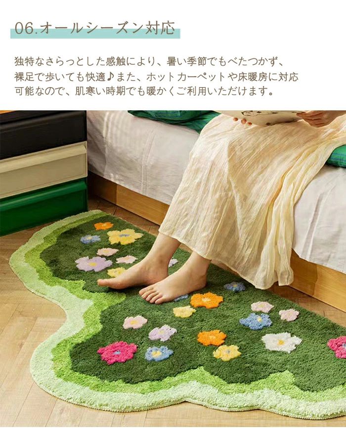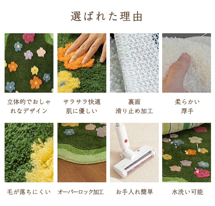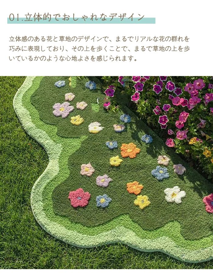 ラグ 洗える ラグマット 芝生風 花柄 60x120cm 75x150cm