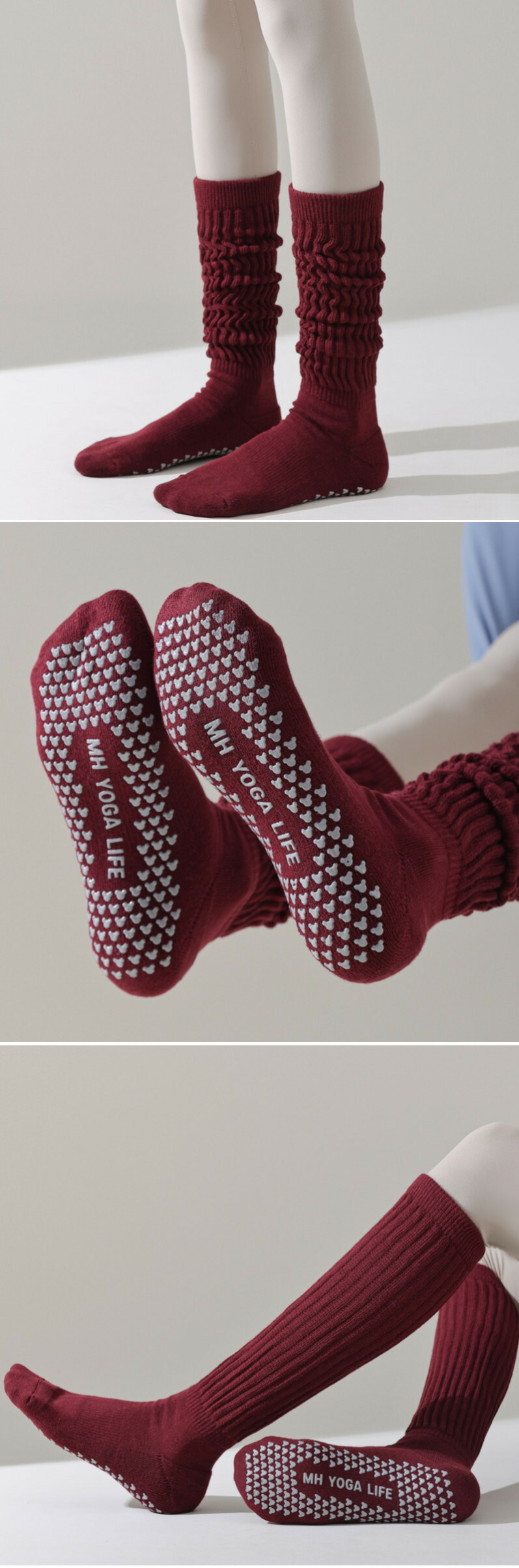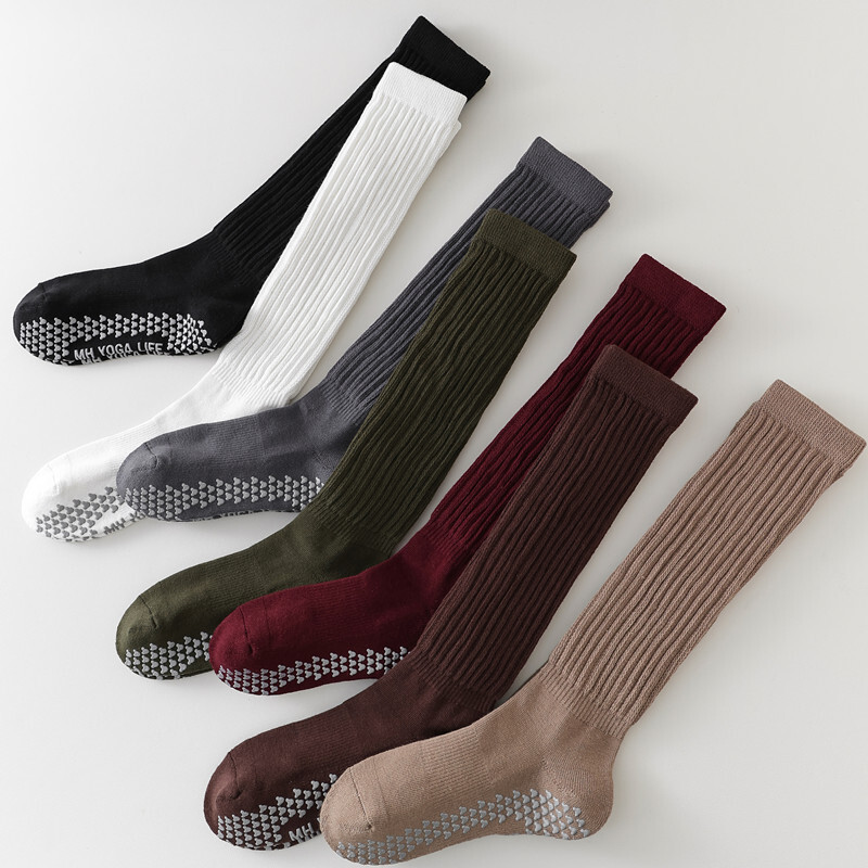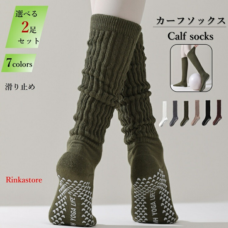 カーフソックス ソックス 靴下 滑り止め ヨガソックス レディース ゆったり無地ハイソックス パンプスソックス 厚手 あったか 厚手パイル 綿混 秋冬 冷え対策 アウトドアにも ロングソックス 防寒
