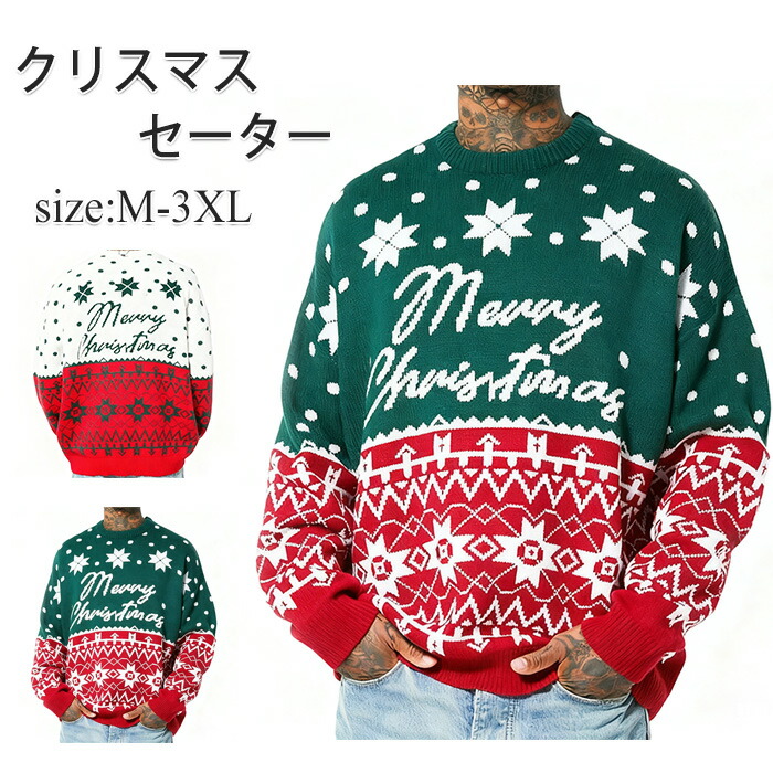 アグリーセーター メンズセーター イミ トップス ニット セーター 豊富 赤*緑 赤*白 M L XL 2XL 3XL