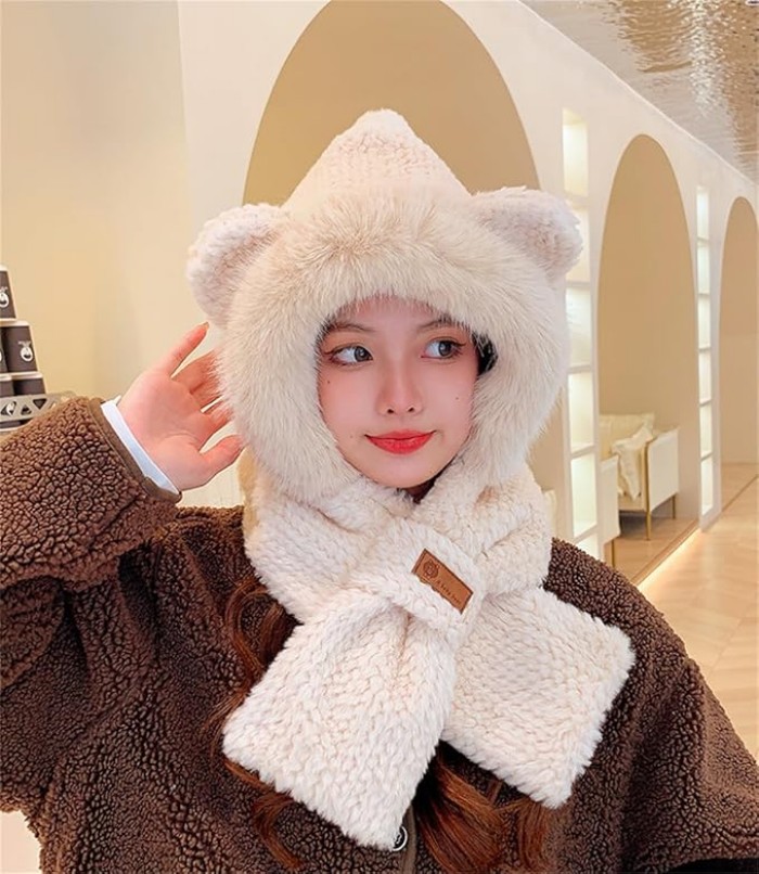 ニット帽 マフラー 付き レディース 帽子 レディース帽子 ニット帽 人気 カーキ ベージュ ピンク グレー