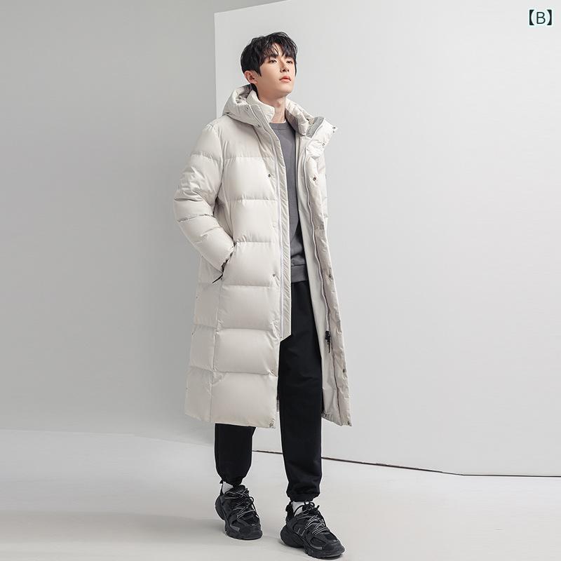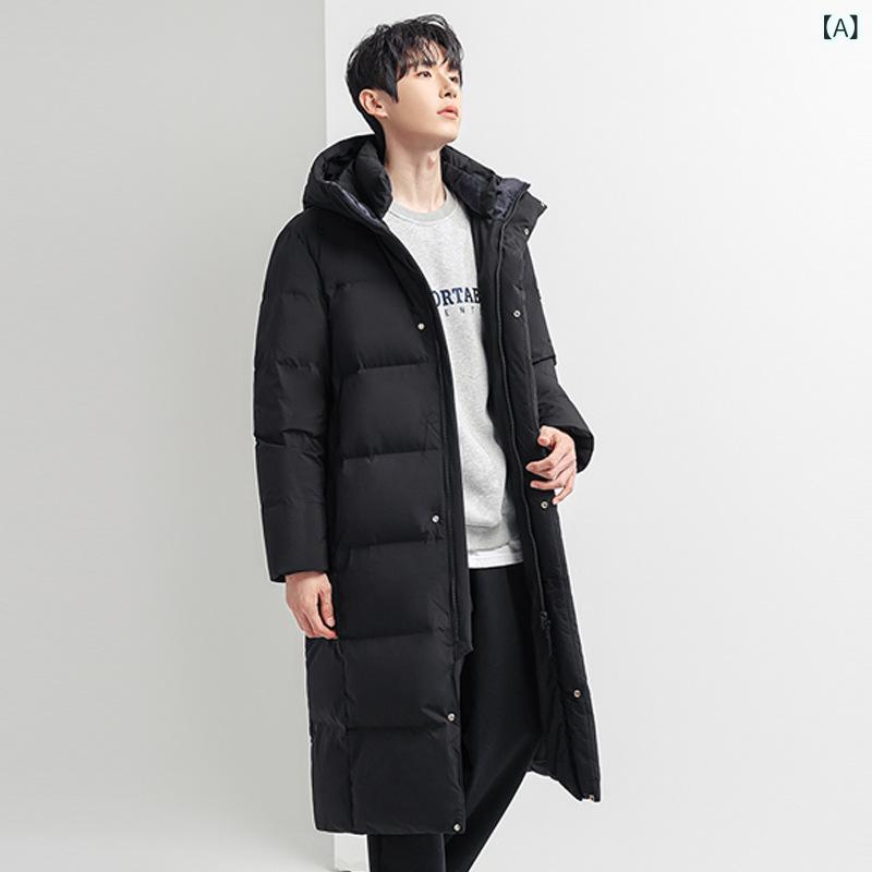 ダウンジャケット メンズ 男性用 ロング丈 90%ダウン 英国風 ゆったりサイズ 黒 冬メンズファッション コート ジャケット 白