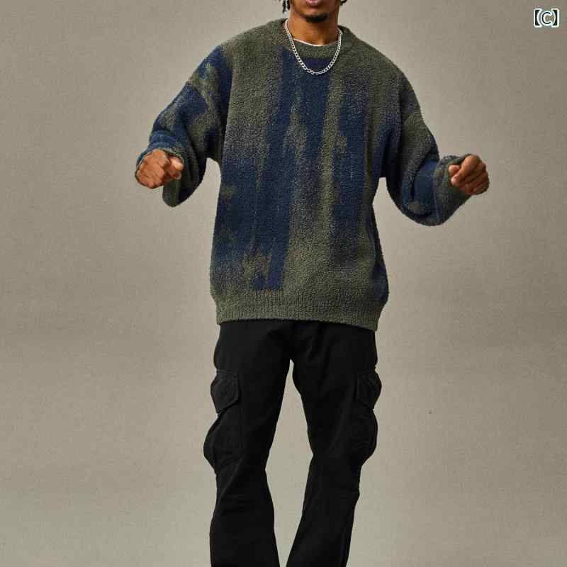 ニット メンズ 秋冬物 セーター 配色 メンズファッション 豊富 A:黒 B:杏 C:緑 M L XL XXL XXXL
