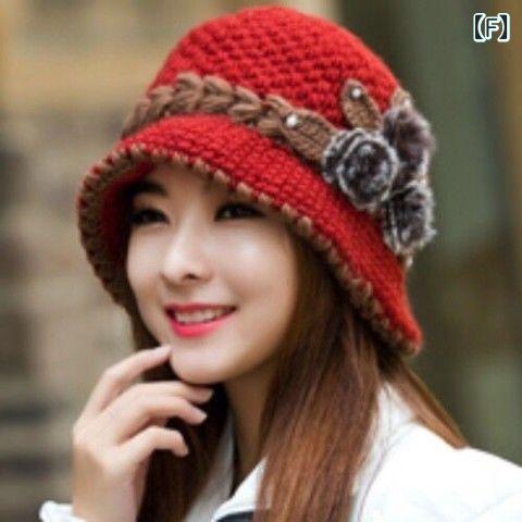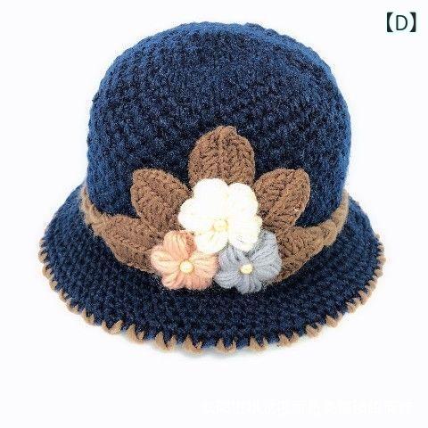 ニット帽 レディース 秋冬 毛糸 帽子 花柄 裏起毛 バケットハット 冬用 婦人帽 防寒 あたたかい