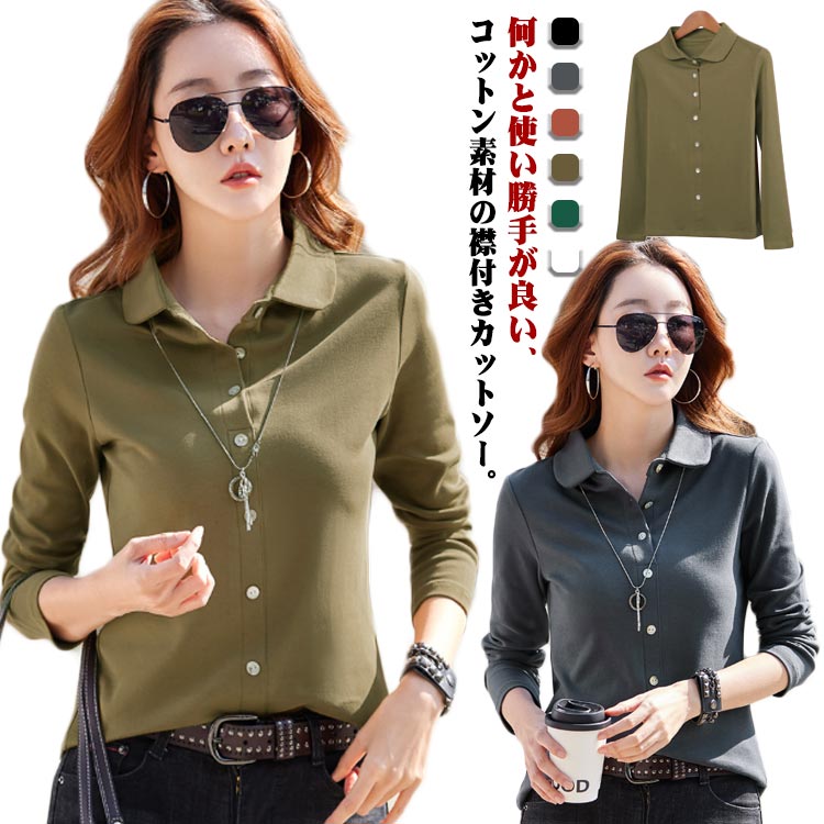 カットソー 襟付き シャツ レディース レディースファッション 新登場! ホワイト ブラック ダークグレー オレンジ カーキグリーン グリーン S M L XL 2XL 3XL