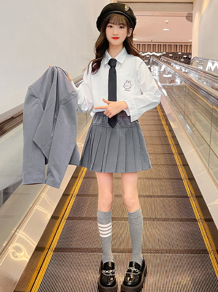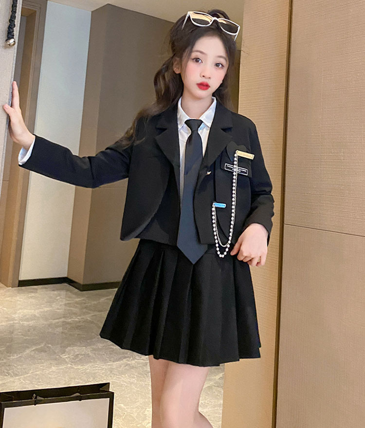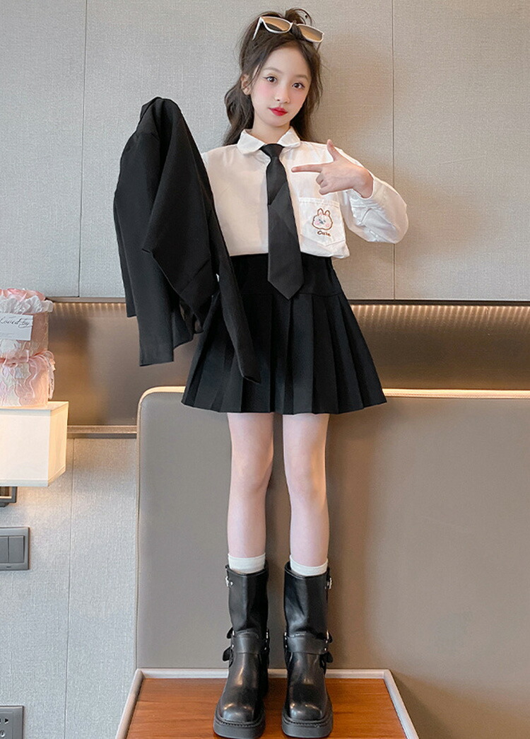 卒業式 女の子 スーツ 韓国 制服 な キッズ スーツ カジュアルセットアップ スーツ 豊富 黒-2点セット 黒-4点セット 灰-2点セット 灰-4点セット 110 120 130 140 150 160 170