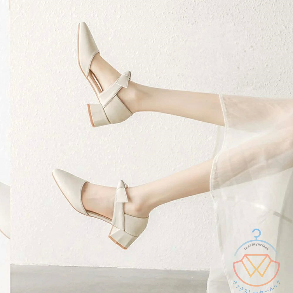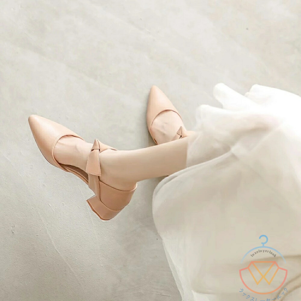 パンプス 痛くない リボンパンプスヒー レディース靴 パンプス 早い者勝ち アイボリー ピンクベージュ 22.5cm(35) 23.0cm(36) 23.5cm(37) 24.0cm(38) 24.5cm(39)