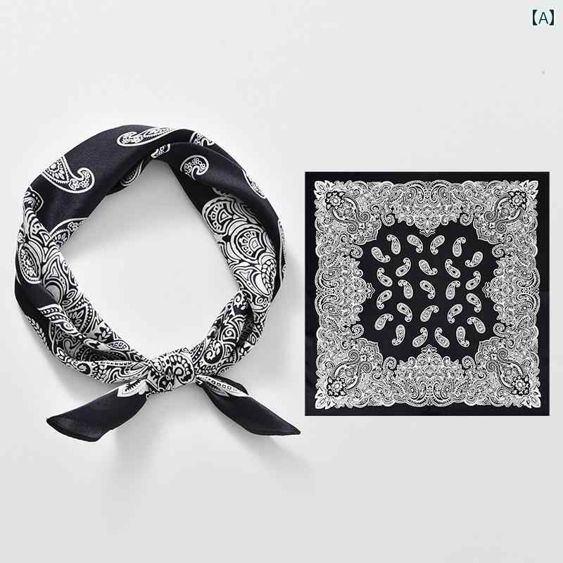 シルクスカーフ 大判 プリント柄 ネックチーフ ヘッドバンド 正方形 柔らかい 薄手 カラバリ アレンジ ヒップホップ ストリート カジュアル ダンス