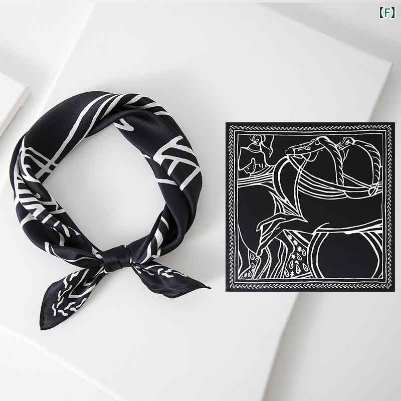 シルクスカーフ 大判 プリント柄 ネッ ハンカチ ハンドタオル バンダナ 豊富な品揃え A:黒 B:赤 C:ブラック D:ブルー E:グリーン F:ブラック G:ホワイト H:レッド・ブルー