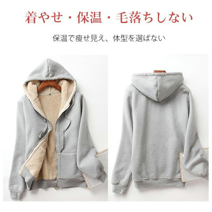 【肌に優しい裏地と使いやすさ】裏起毛パーカー の裏地はソフトで肌触りの良いぬいぐるみ素材でできており、手触りに富む上に表面は適度な光沢があり、パーカー レディース として着用者に快適で肌に優しい体感をもたらします。また ジップパーカー の特徴であるスムーズなジッパー設計は着脱を簡単にし、急ぎの時でも手間なく着用できる便利さを実現します。