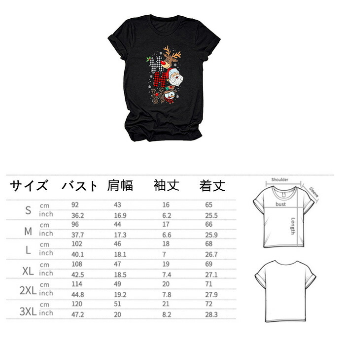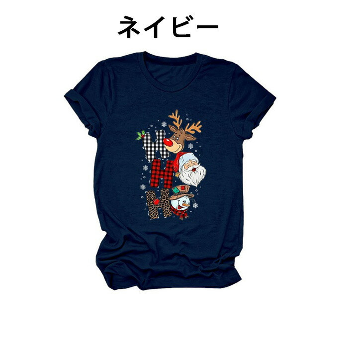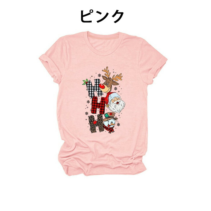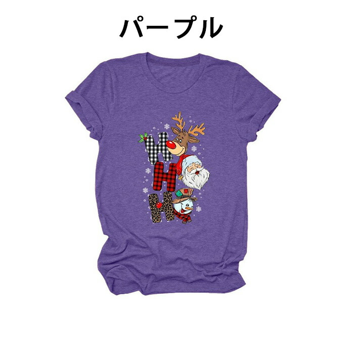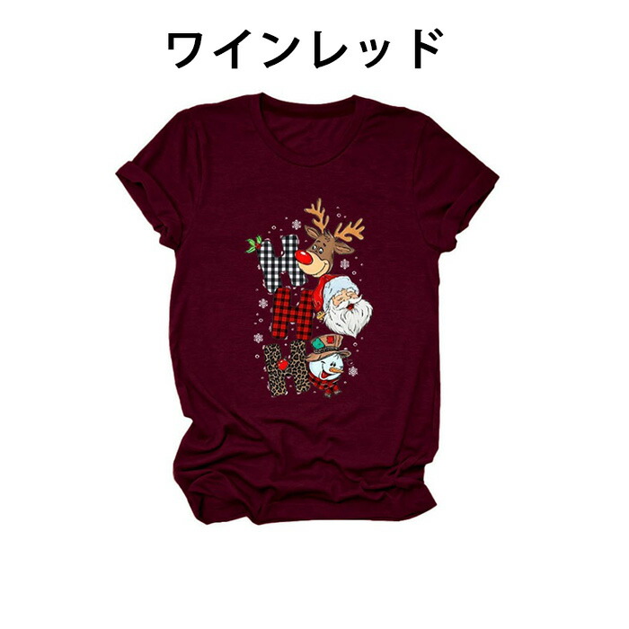 クリスマス 半袖 レディース カットソ トップス Tシャツ カットソー 特集 ブラック ダークグレー ライトグレー ホワイト ベージュ ピンク ネイビー パープル グリーン ワインレッド S M L XL 2XL 3XL