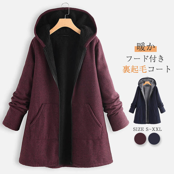 裏起毛 コート ミディアム丈 裏起毛コ レディースファッション 豊富な品揃え レッド ネイビー S M L XL XXL