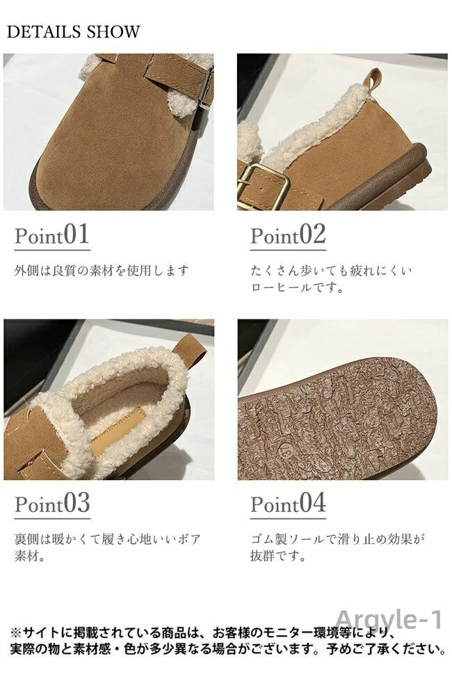 スリッポン レディース フラットシューズ 靴 裏起毛 厚底 ボア ラウンドトゥ ローヒール 防寒 暖かい 歩きやすい ぺたんこ