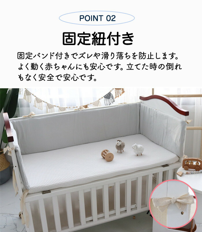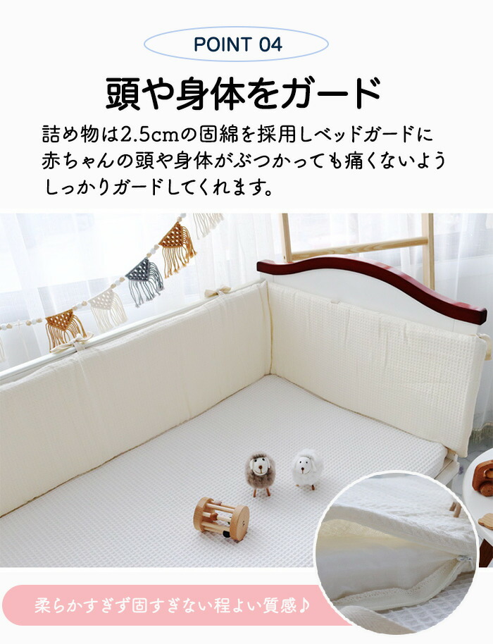 赤ちゃんの安全を第一に考えた、クッショ性の高いベッドガードです。