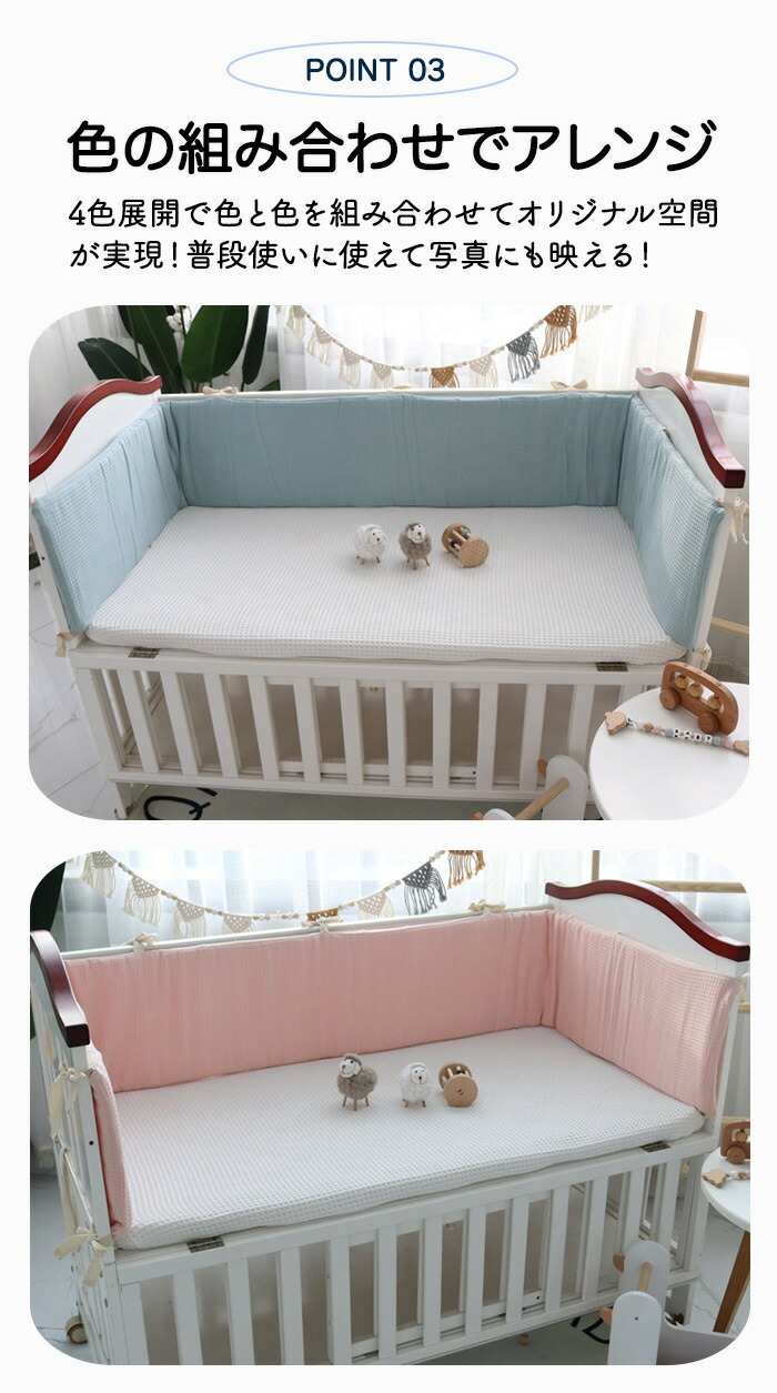 ベビーベッド ガード バパー 全周タイ リニューアル かわいい ぶつかり防止 ベビーベッド 厚みたっぷり ベビーベッドガード クッショ ベビーベッ用 ごっつん防止 ベビー 赤ちゃん ベッドガード ベビー ベッドガード 綿 ベッドバパー 洗える 転落防止 手 足 飛び出し防止 ベッドフェス ベビー ぶつかり防止 ケガ防止 通気性 ベッドガード サイドガード クッショガード 衝突 防止 保護 新生児 赤ちゃん ベビー シル かわいい おしゃれ 出産祝い 出産お祝い 出産準備 育児 男の子 女の子 ギフ 北欧風 キッズルーム 子供部屋飾り おしゃれ おすすめ 高級感 モダ 高級 地 高品質 送