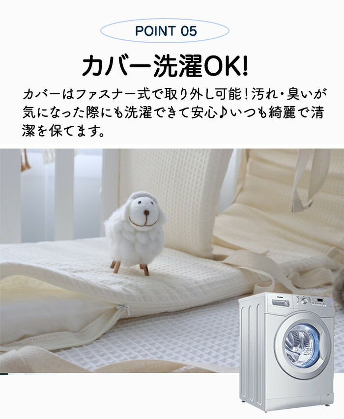 カバーはファスナー式で取り外し可能!洗濯OKで汚れ・臭いが気になった際にも安心です。