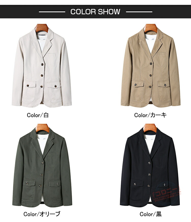 テーラードジャケットメンズ綿100%ブ メンズファッション 続々入荷中 M L XL 2XL 3XL 4XL 5XL 白 カーキ オリーブ 黒