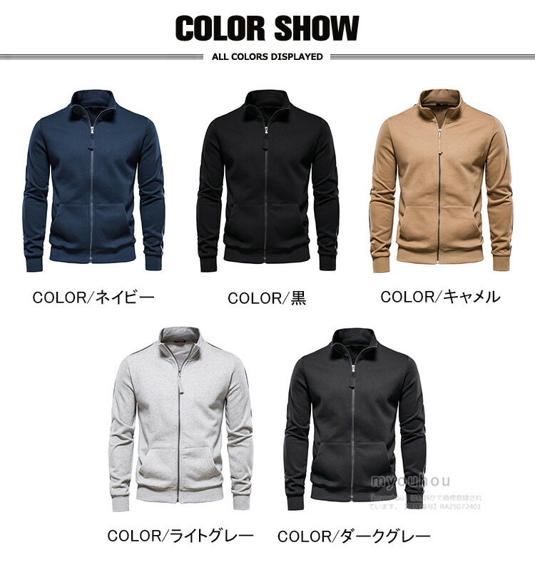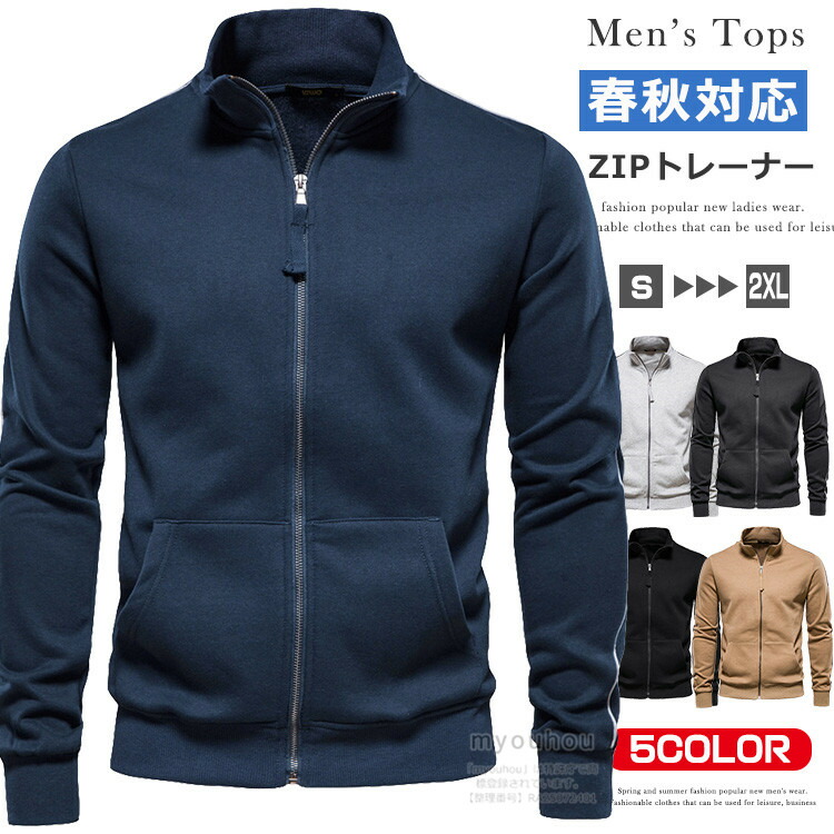 スタンドネック ジップアップ トレーナ メンズファッション 続々入荷中 S M L XL 2XL ネイビー 黒 キャメル ライトグレー ダークグレー