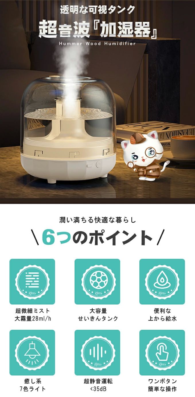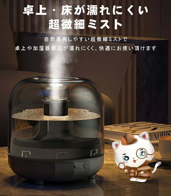 おしゃ 超音波式 USB加湿器 超音波加湿器 超音波式加湿器 卓上加湿器 USB 超音波 オフィス 大容量500ML 上から給水 卓上 超静音