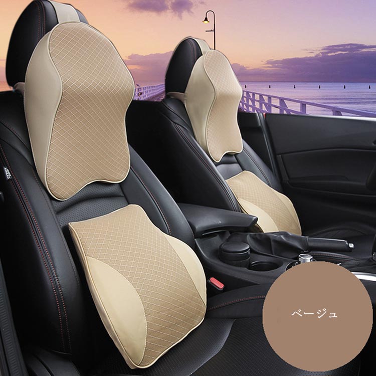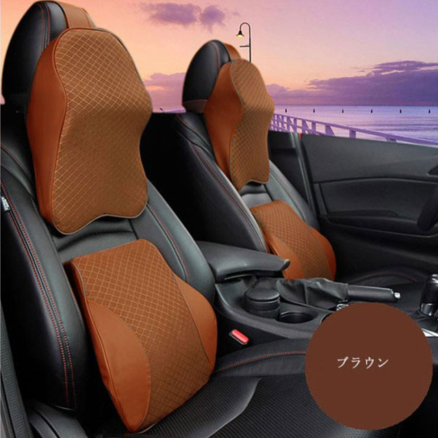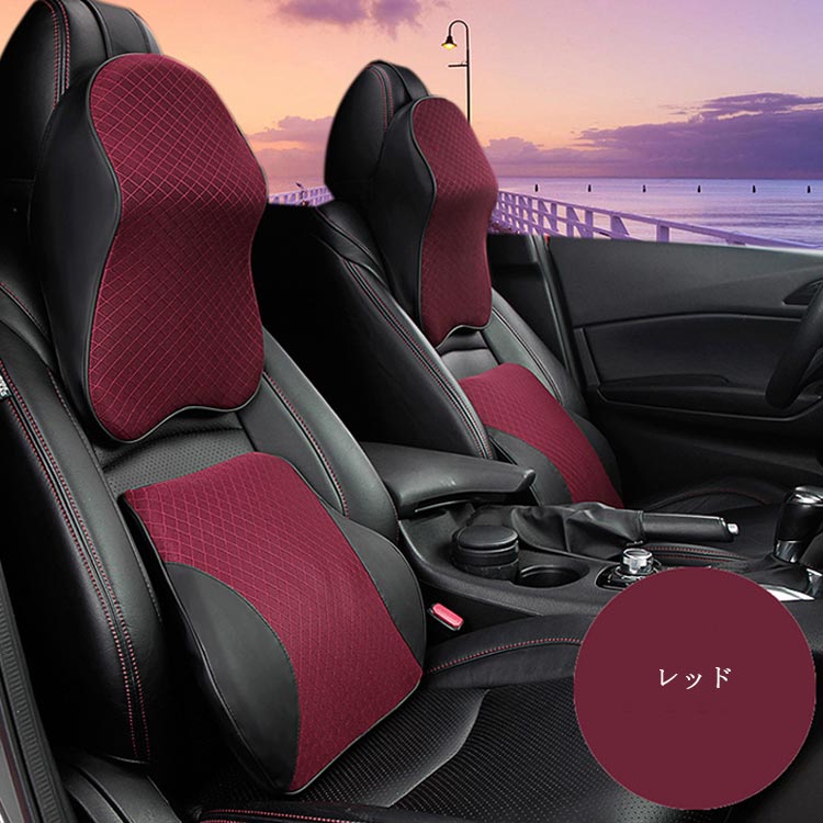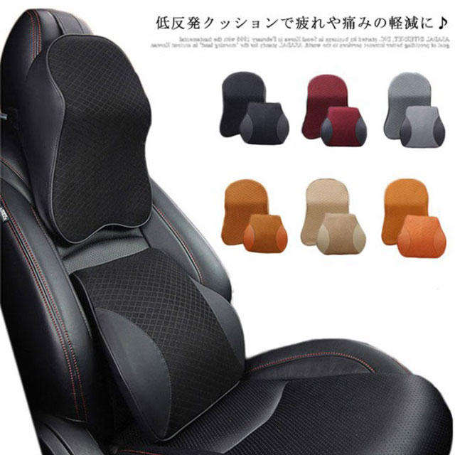 車用 低反発 クッション 首枕 腰枕 ブラック レッド ブラウン ベージュ オレンジイエロー グレー 首枕 腰枕