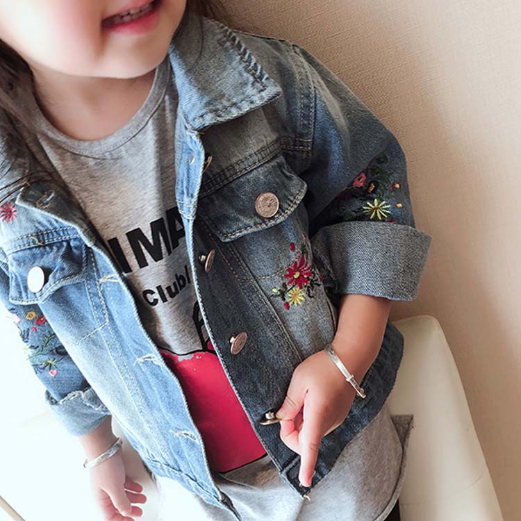 女の子 デニムジャケット 刺繍 花柄 キッズ ベビー マタニティ 続々登場 7(100cm) 9(110cm) 11(120cm) 13(130cm) 15(140cm)