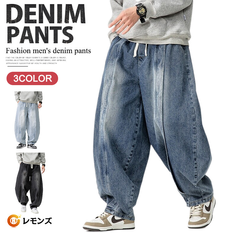 デニムパンツ ワイドパンツ バルーンパ メンズファッション 新登場! M L XL 2XL 3XL 4XL 5XL 黒 ライトブルー ダークブルー