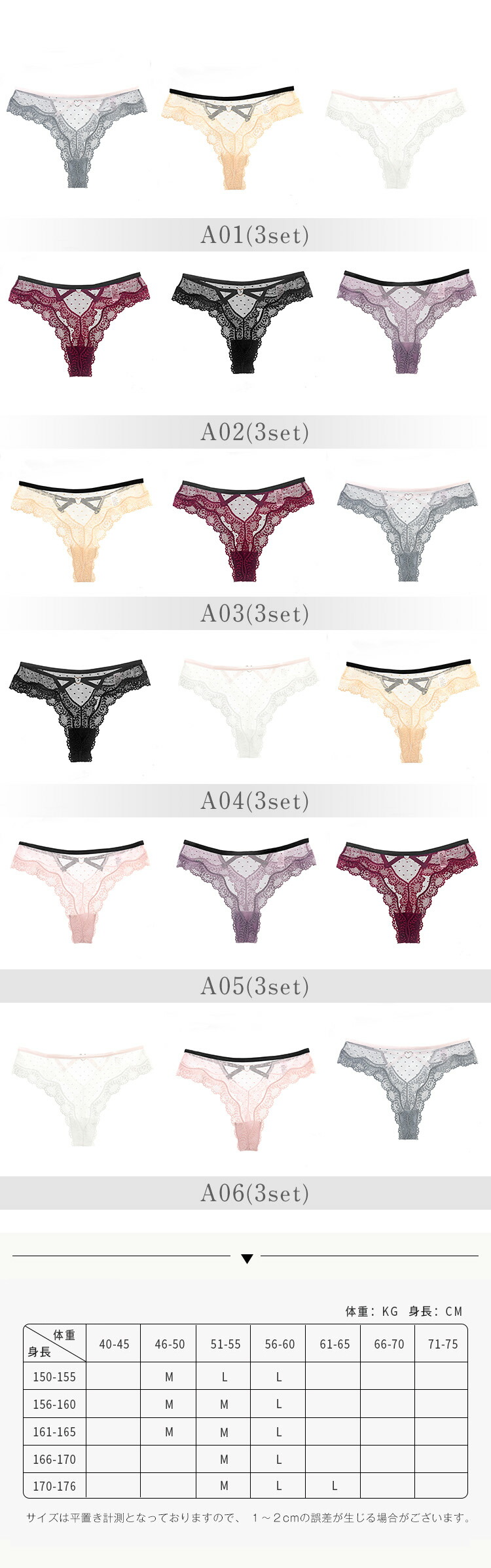 Tバック ショーツ タンガ tバック レディース インナー 下着 ショーツ Tバック Gストリング 新作 M (参考体重45-52.5KG) L (参考体重50-62.5KG) A01(3set) A02(3set) A03(3set) A04(3set) A05(3set) A06(3set)