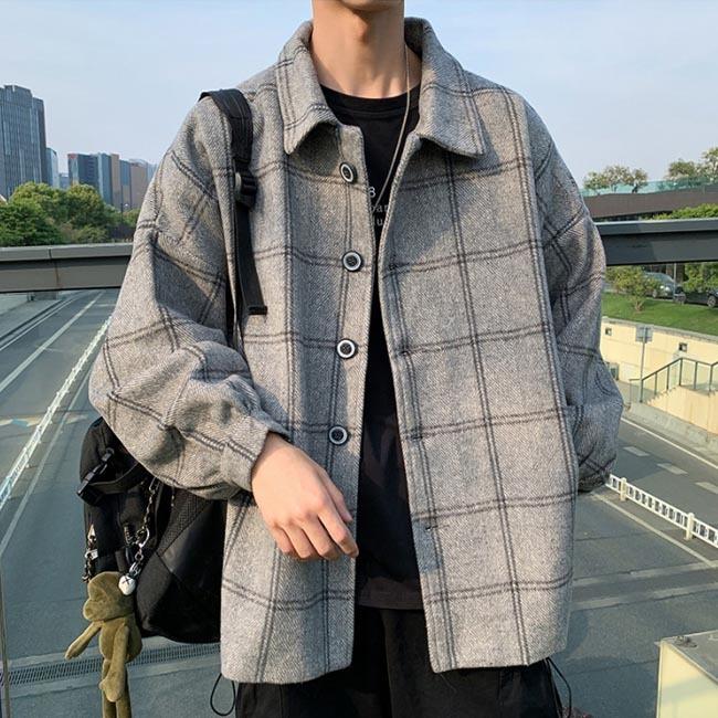 ピーコート メンズ チェスターコート チェック柄 ツイード ジャケット アウター 厚手 シャツジャケット ラシャコート お洒落 秋