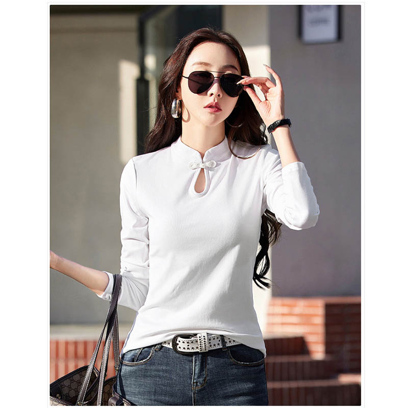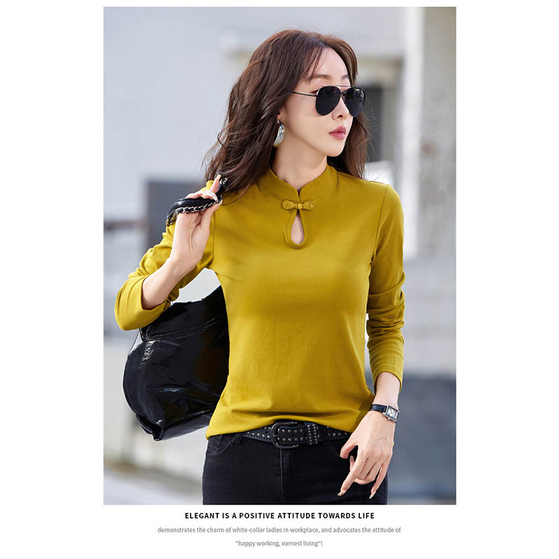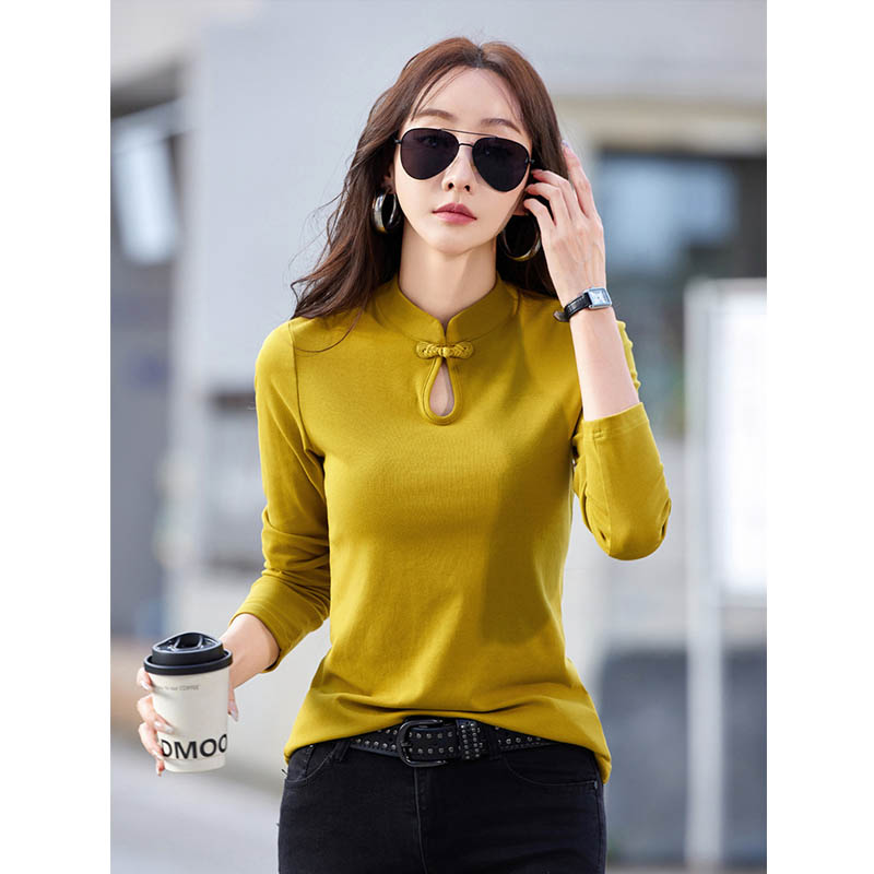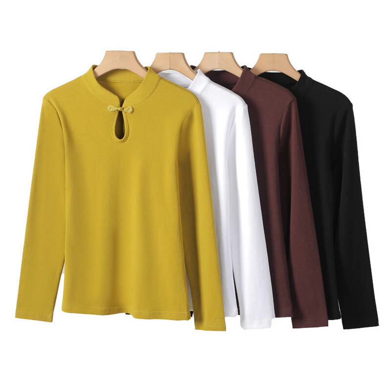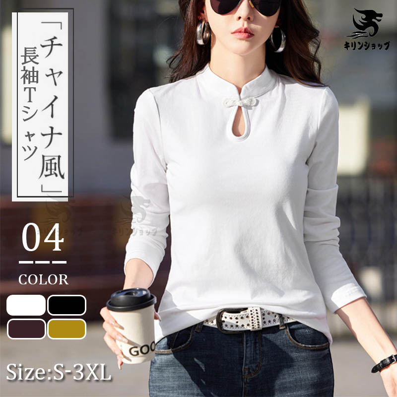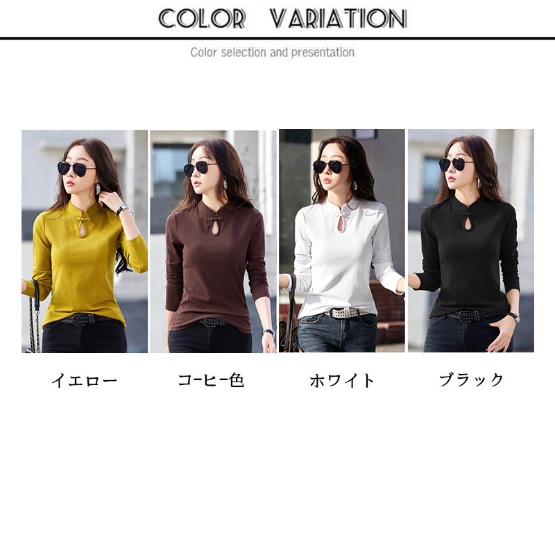 長袖 Tシャツ レディース チャイナ服 レディースファッション 人気 ホワイト ブラック イエロー コ-ヒ-色 S M L XL 2XL 3XL