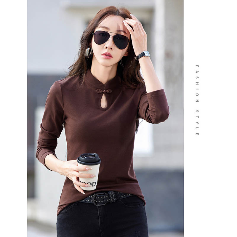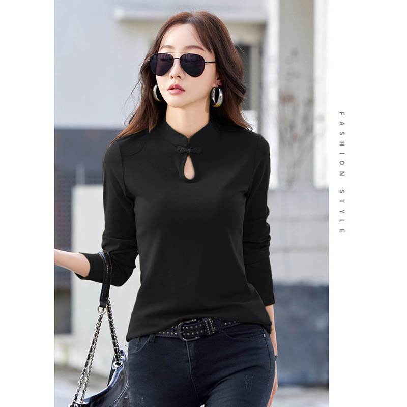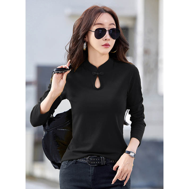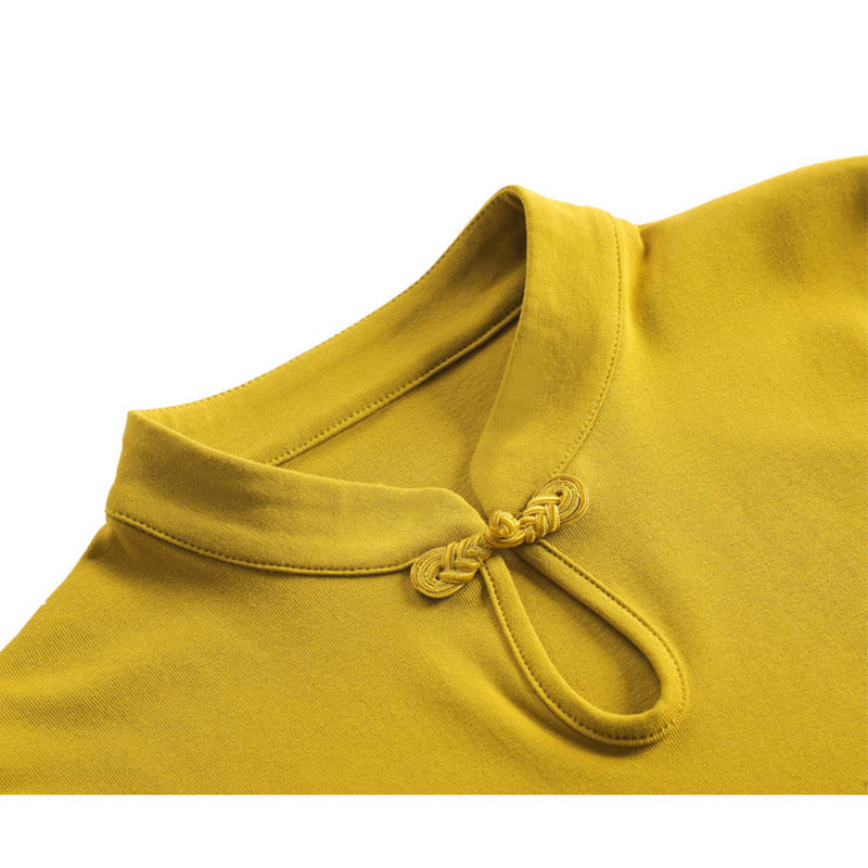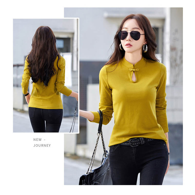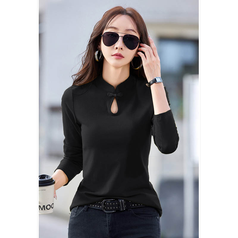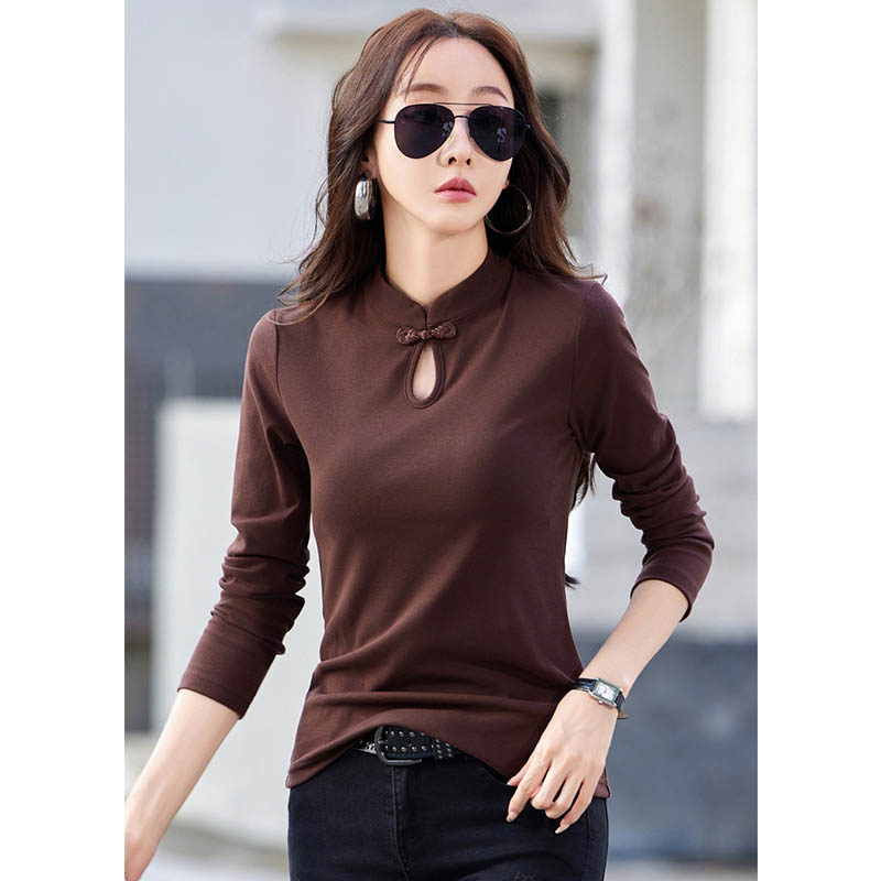長袖 Tシャツ レディース チャイナ服 レディースファッション 人気 ホワイト ブラック イエロー コ-ヒ-色 S M L XL 2XL 3XL