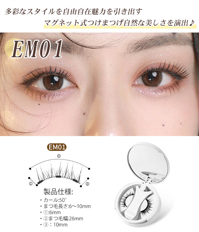 磁気つけまつ毛 マグネット式 3D 日 EM01 EM02 EM03 EM07 EM10 EM12