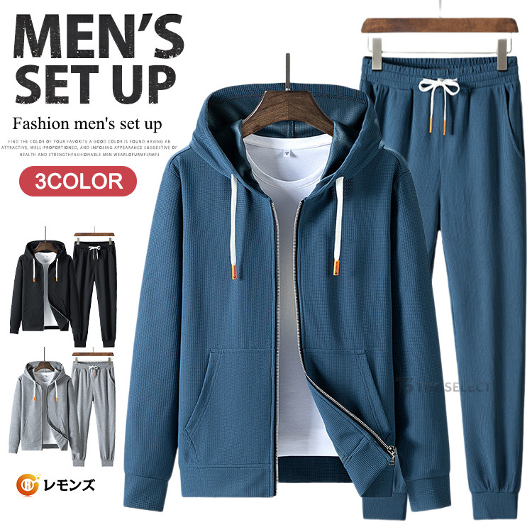 セットアップ メンズ ワッフル ストレ スポーツ アウトドア 特集 M L XL 2XL 3XL 4XL 黒 ブルー グレー