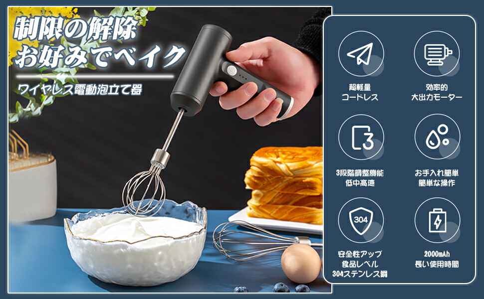 ハンドミキサー 電動泡立て器 軽量 小 ブラック ピンク ホワイト