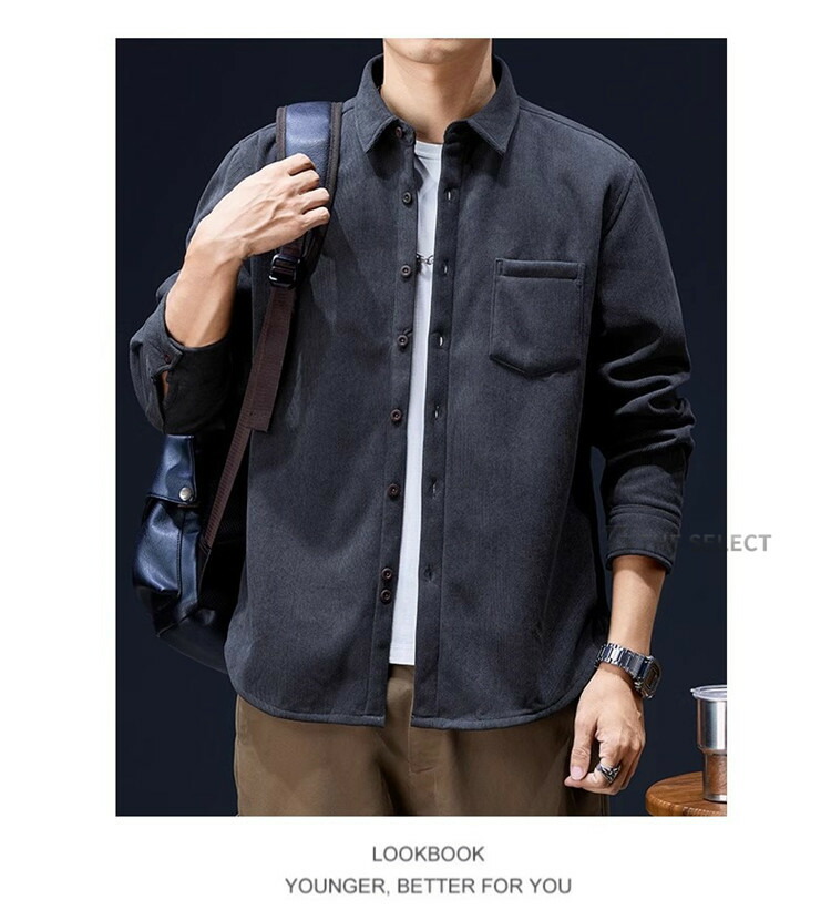暖か コーデュロイ シャツ メンズ カ トップス カジュアルシャツ 新作 M L XL 2XL 3XL 4XL 5XL ダークグレー 黒 ベージュ