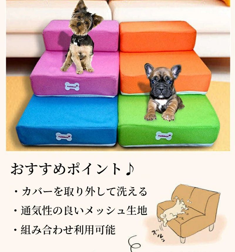 ドッグステップ 犬 階段 2段 1段 犬用品 介護用品 スロープ ステップ 人気 カーキ ブルー グレー ブラウン ブラック ロイヤルブルー グリーン ピンク フレシアピンク オレンジ レッド イエロー S M