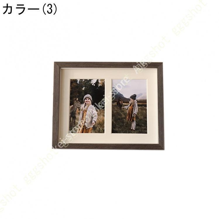 木製風フレームとペーパーマットの写真立て 壁掛け インテリアフレーム4 写真立て 卓上 L版 シンプル ナチュラル フォトフレーム 木製 チーク材 ウッド