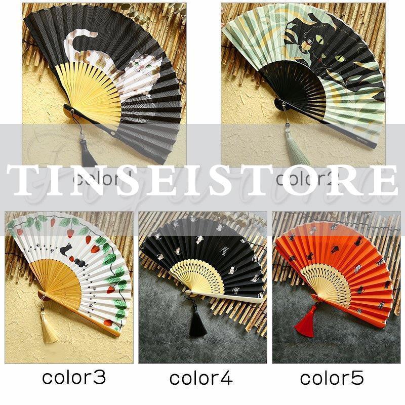 扇子 レディース メンズ 竹製 猫柄 レディースファッション 通販 color1 color2 color3 color4 color5