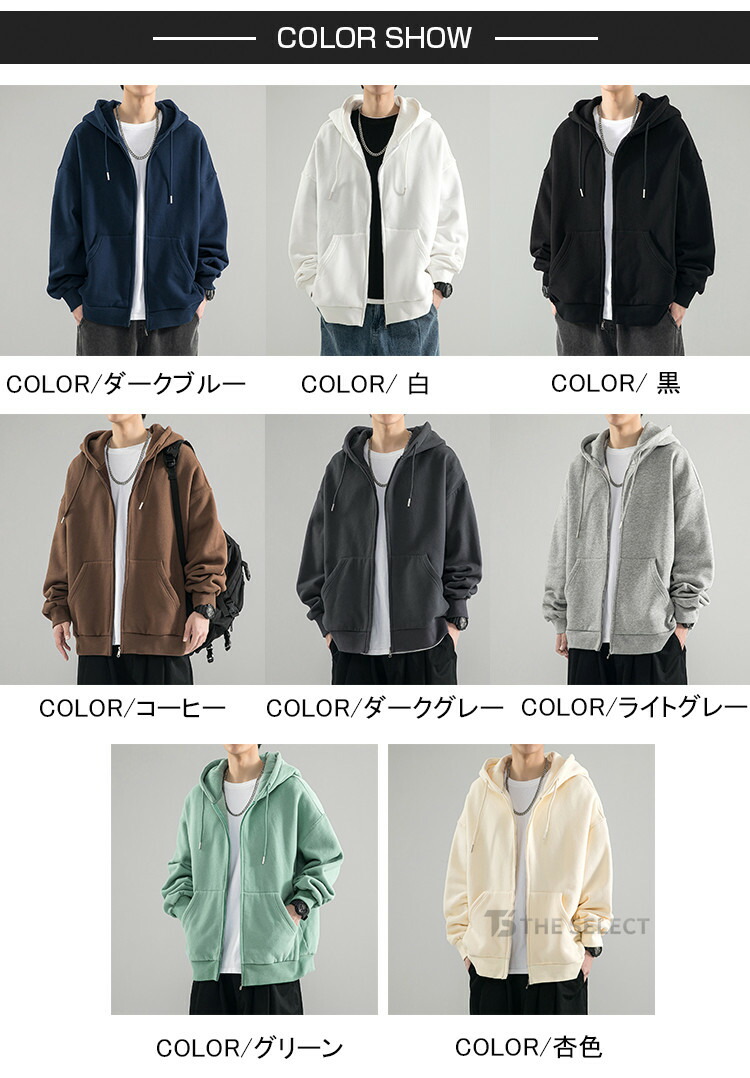 フルジップ パーカー メンズ スウェッ メンズファッション 早い者勝ち M L XL 2XL 黒 白 ダークグレー ライトグレー コーヒー グリーン