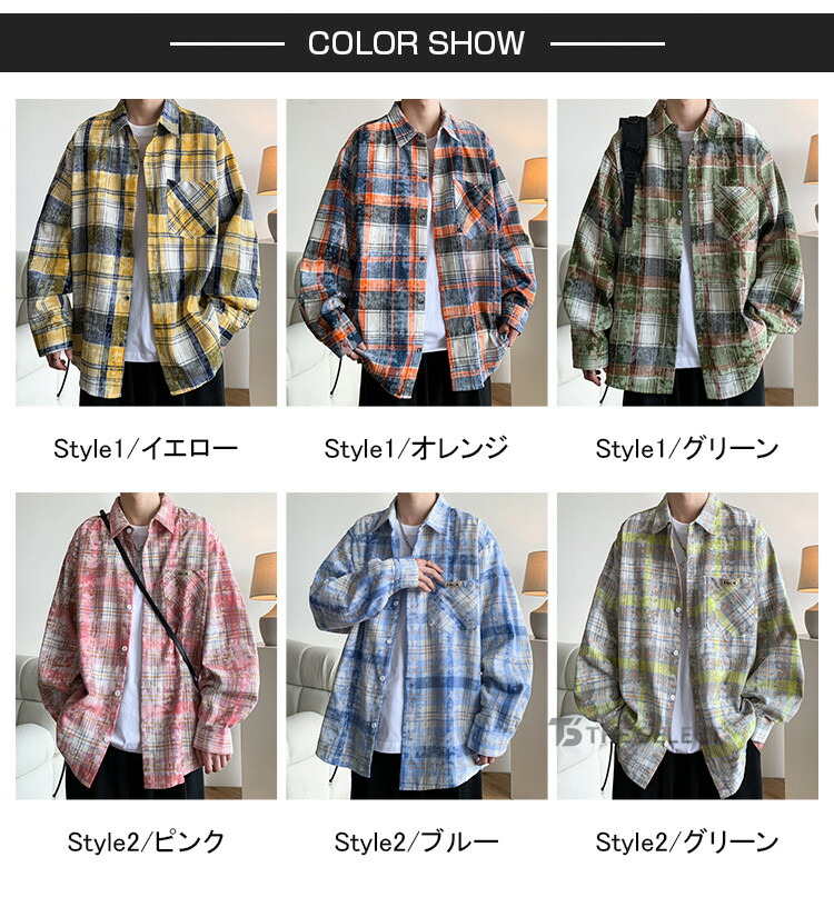 ビッグシャツ メンズ シャツ チェック トップス カジュアルシャツ 早い者勝ち M L XL 2XL 3XL 4XL 5XL C620/イエロー C620/オレンジ C620/グリーン C621/ピンク C621/ブルー C621/グリーン