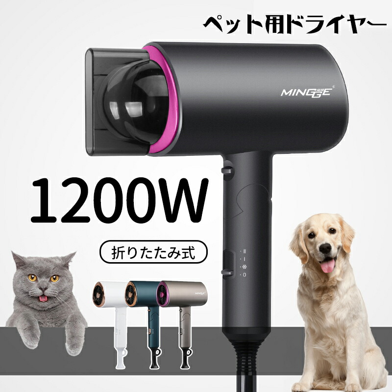 ペットドライヤー 犬 猫 ペットヘアードライヤー ペット用品 3段階調整可能 冷熱風 温度調整可能 強いブロー力 低騒音 大風量 折り畳み 家庭用 風呂 速乾 軽量 ブロワー 送風機 1200w 安全