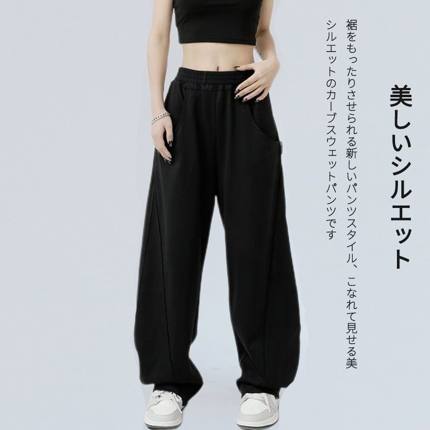カーブパンツ ワイドパンツ スウェット ボトムス パンツ 超目玉商品 ブラック ライトグレー ダークグレー ベージュ ミリタリー M L XL