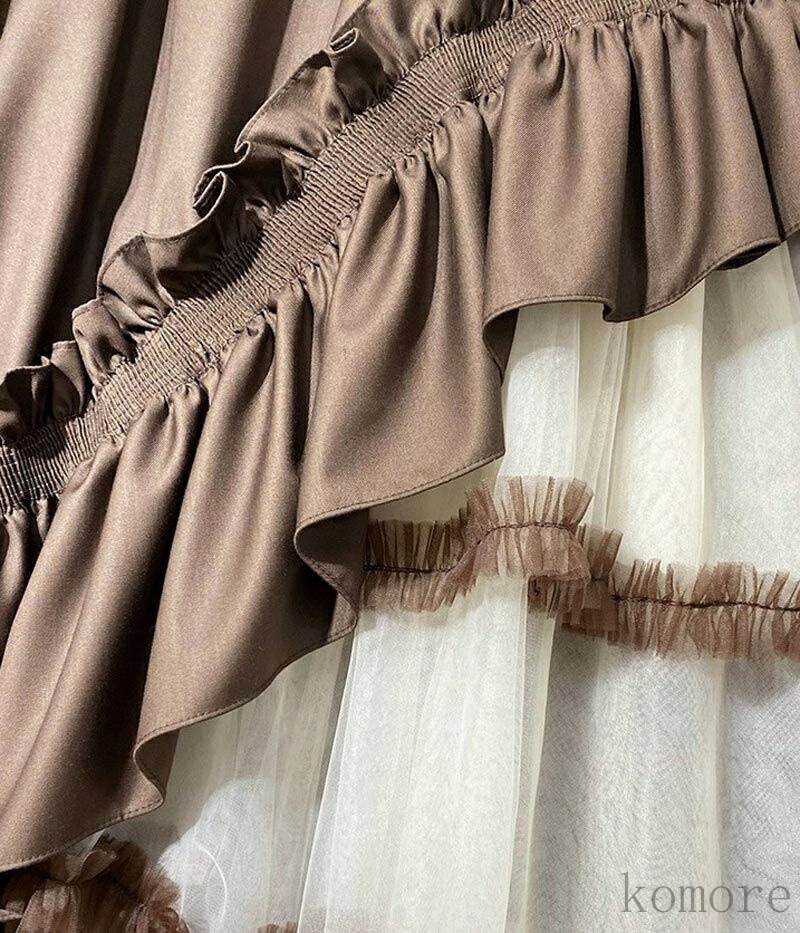 チュール スカート ロング アシメトリ ボトムス スカート 人気 ブラック コーヒー 黒
