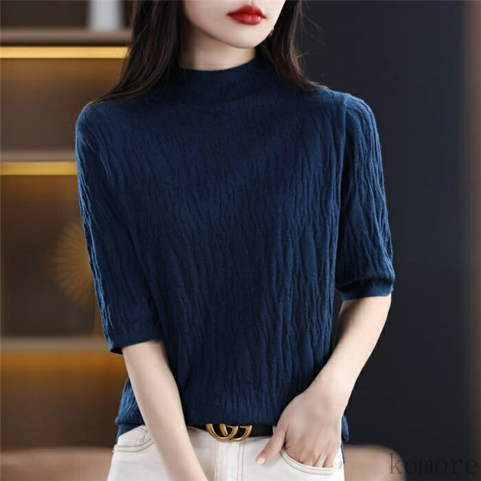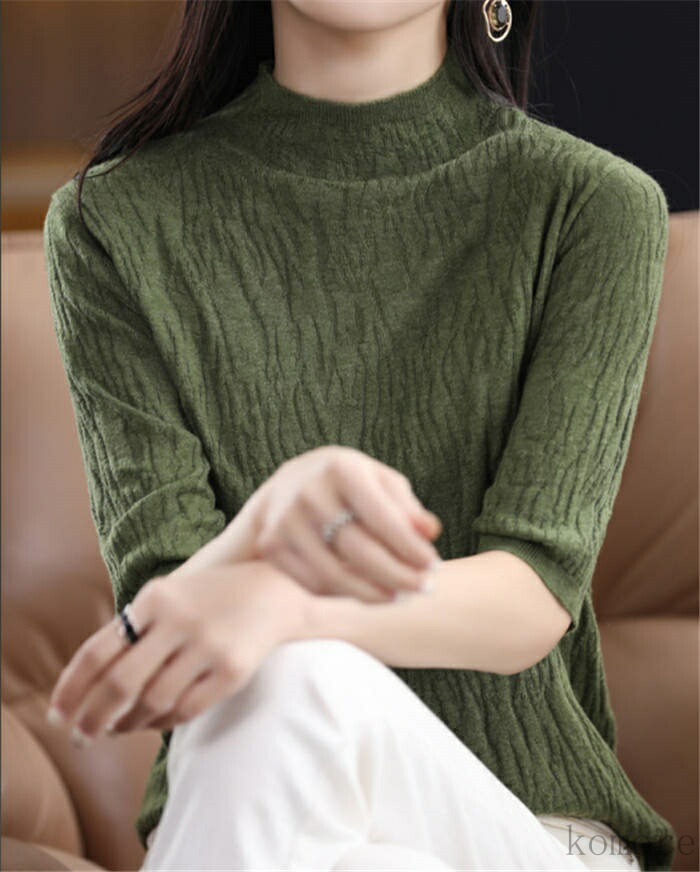 セーター 秋 レディース 5分袖 フォ レディースファッション 早い者勝ち ベージュ ダークグレー コーヒー 黒 ラクダ金色 緑 白 紺色 パープル S M L XL XXL