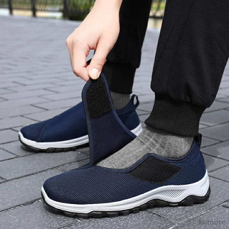 リハビリシューズ 紐なしスニーカー メ メンズ靴 スニーカー 豊富 ブラック男 グレー男 ネイビー男 レッド女 ブラック女 39(24.5cm) 40(25cm) 41(25.5cm) 42(26cm) 43(26.5cm) 44(27cm)