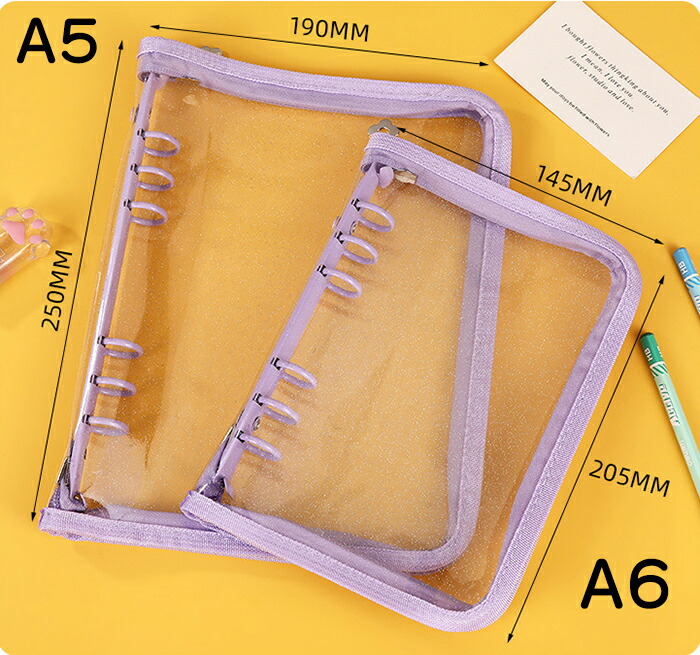 シール帳 リフィル バインダー A5/A6サイズ 手帳型 トレカ収納 クリア シールバインダー 透明 シール コンパクト カラフル PVC 防水 黄ばみ防止 手帳 女の子向け 男の子 手帳 ファスナー付き 収納用 DIY活用 推し活グッズ クリアバインダー