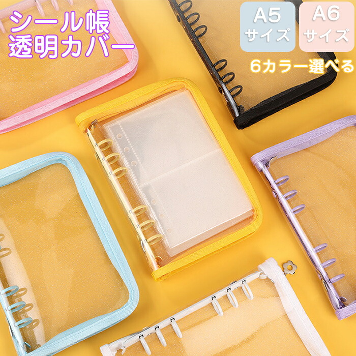 シール帳 リフィル バインダー A5 A6サイズ 手帳型 トレカ収納 クリア シールバインダー 透明 シール コンパクト カラフル PVC 防水 黄ばみ防止 女の子向け 男の子 ファスナー 手帳