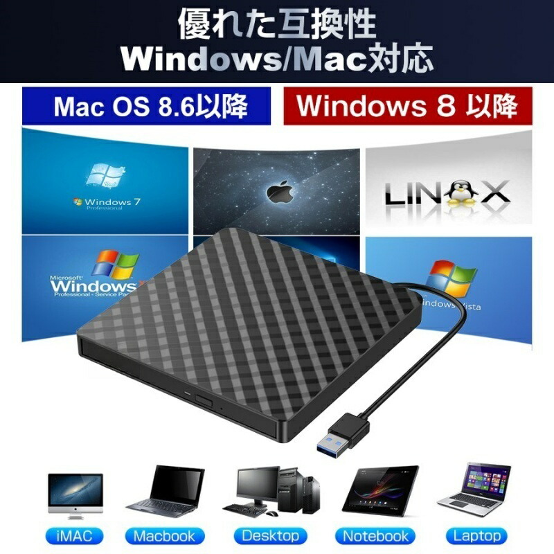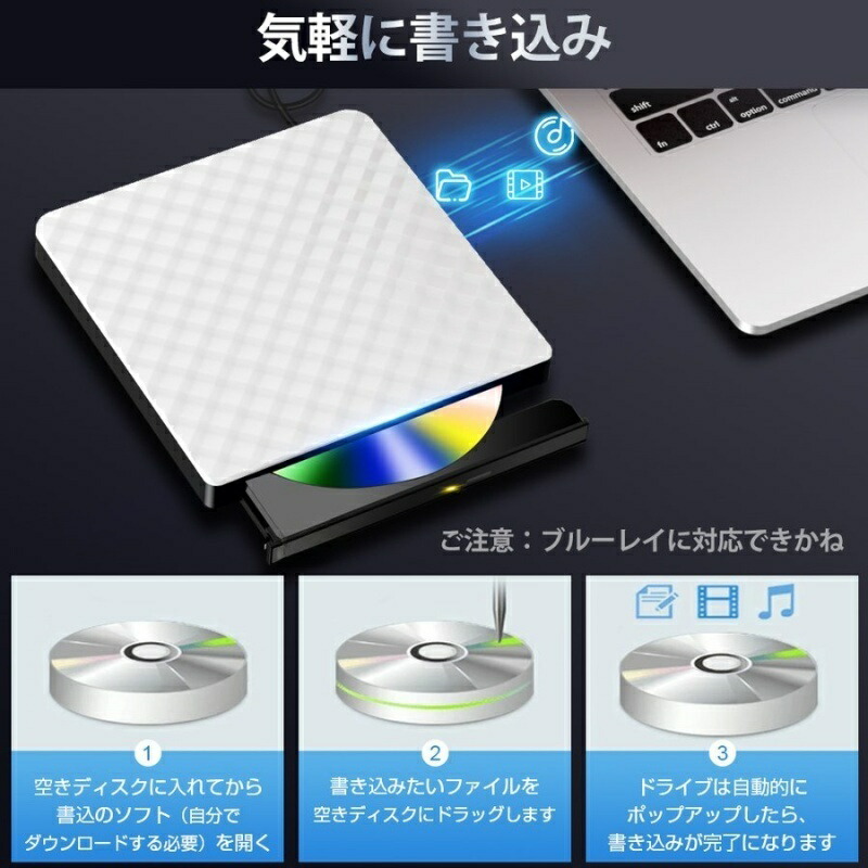 DVDドライブ 外付け CDドライブ ブラック ホワイト