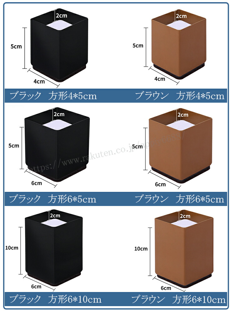 継ぎ足 椅子脚カバー 長方形 継ぎ脚 ブラック円形:4個 ブラック方形:4個 ブラウン円形:4個 ブラウン方形:4個 底部4cm*高さ5cm 底部6cm*高さ5cm