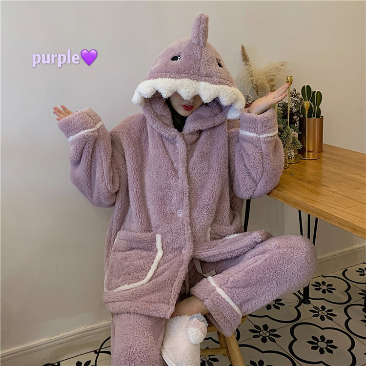 着ぐるみ パジャマ サメ 大人用 もこ レディース ナイトウェア ルームウェア パジャマ 新登場! ブルー パープル M L XL 2XL
