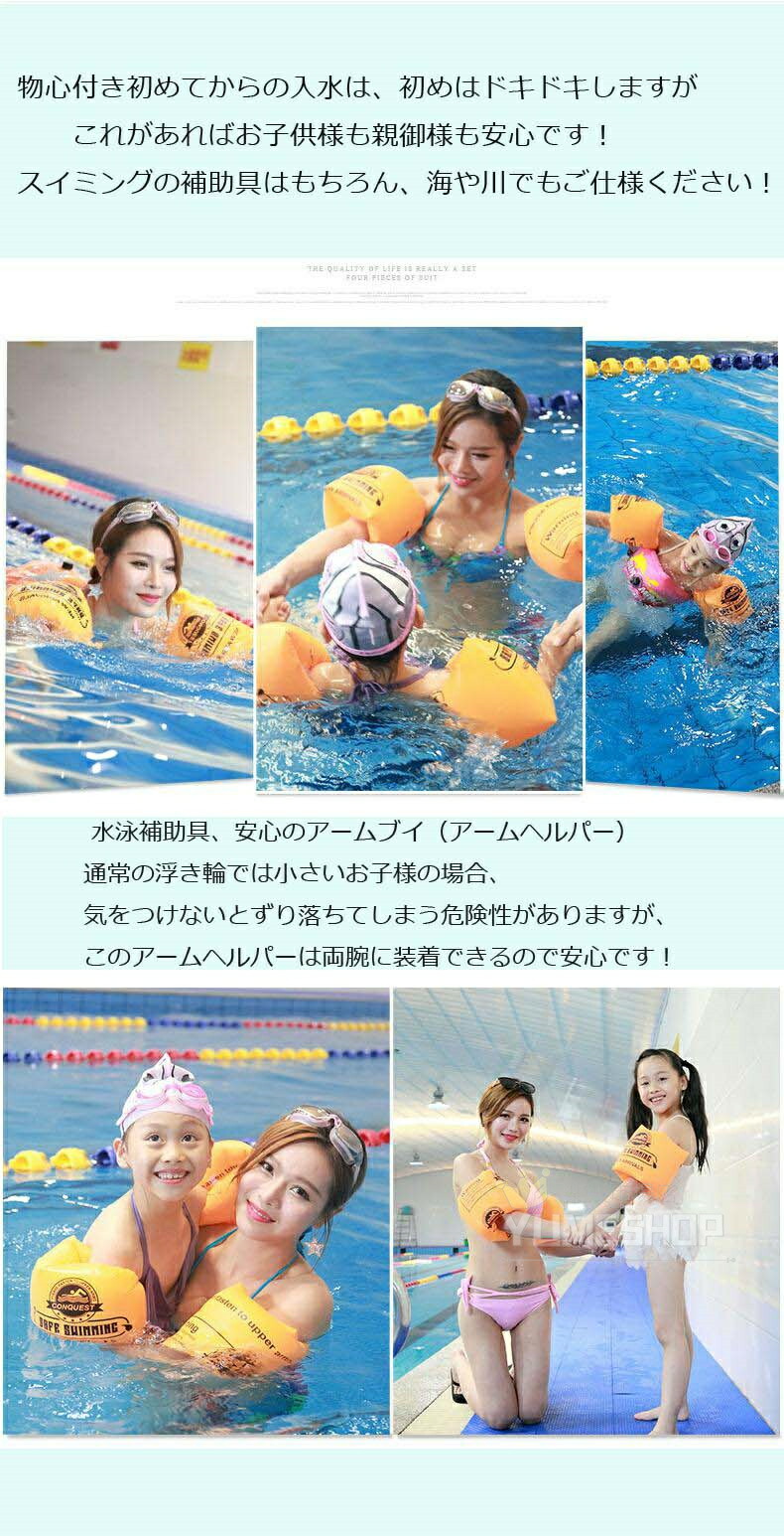 両腕に装着して、使用する補助浮き具です。プールや海水浴で楽しめる人気のフロートです!