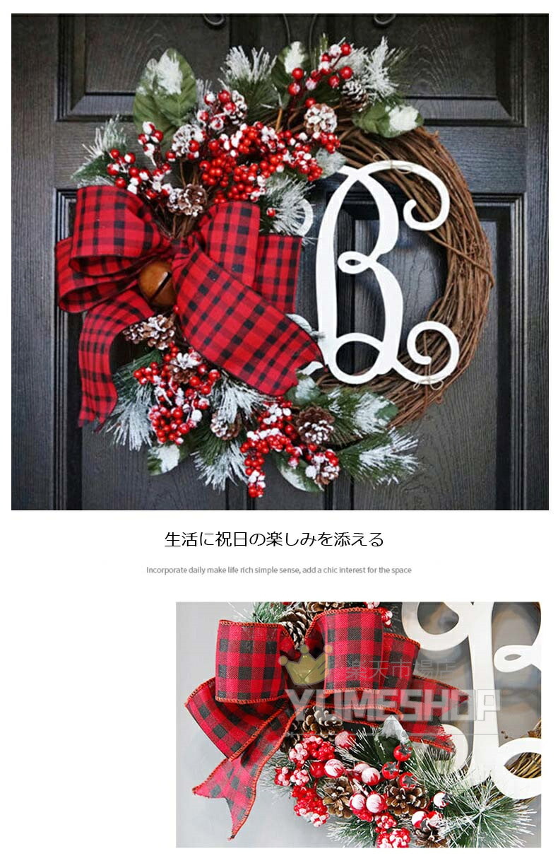 クリスマスリース 玄関 ホーン籐 クリ デザインA デザインB デザインC